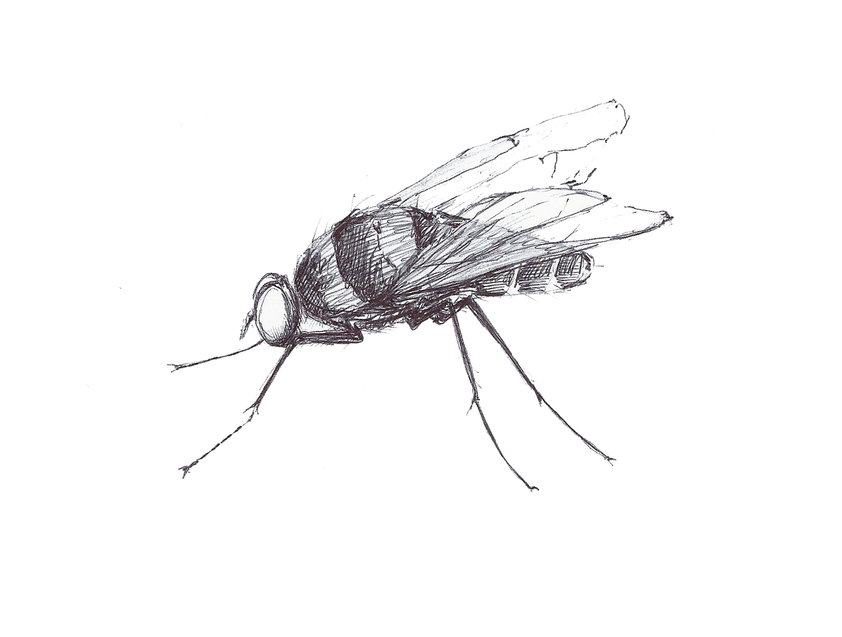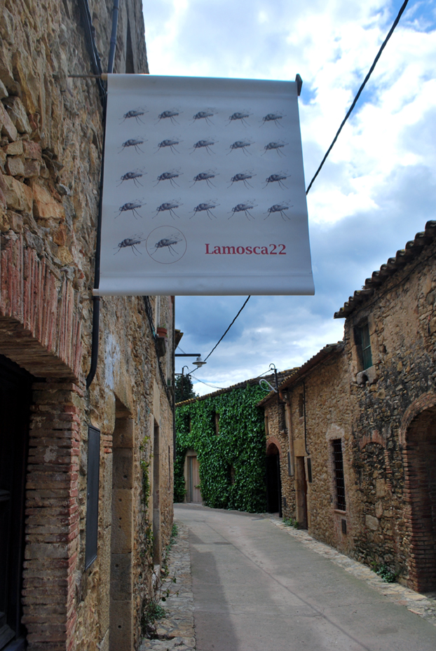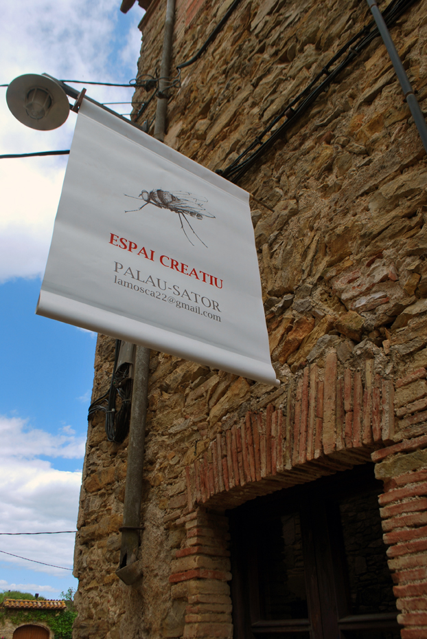 Dibujo a boli negro de una mosca para el cartel de La mosca 22, espacio creativo en Palau-Stor, Gerona.