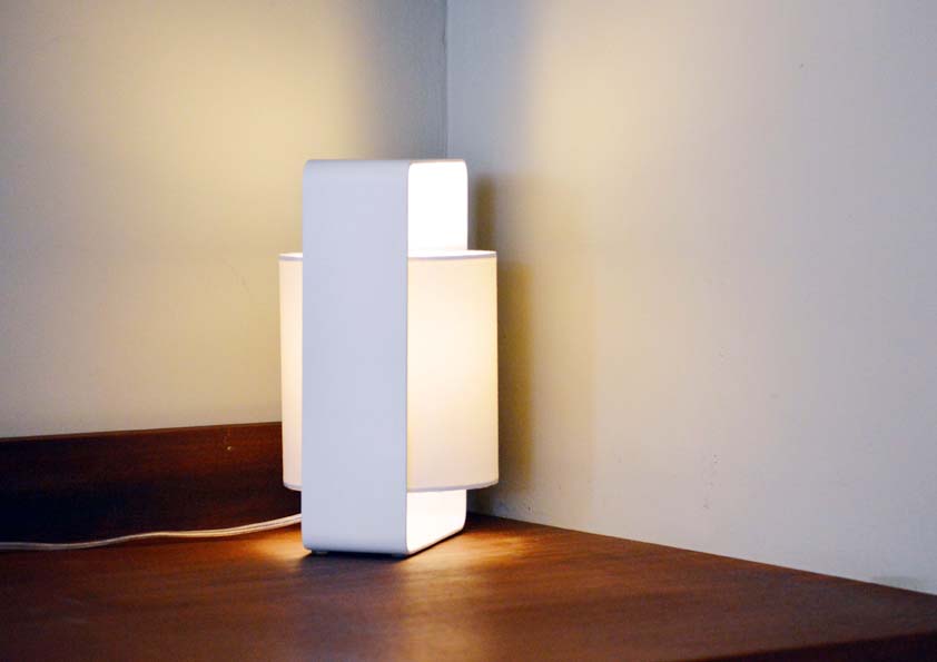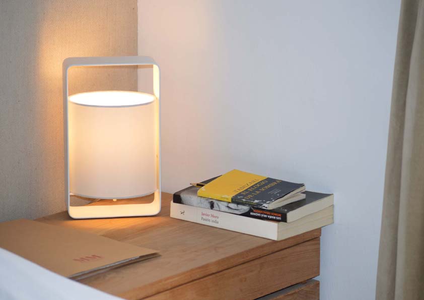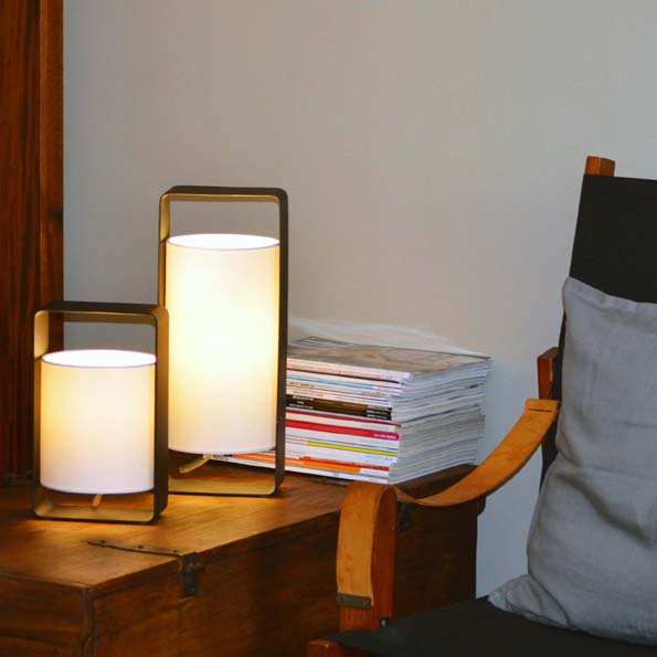 Lula es una lámpara de sobremesa con aire escultórico, ligera, de formas suaves, agradable a la vista y austera, sin elementos superfluos. Su simplicidad le da esa belleza y estilo que caracteriza su diseño. La pantalla está basada en la forma pura del cilindro, alargado, hueco y abierto por ambos extremos. Este se mantiene en suspensión gracias a la cinta metálica que lo rodea, que desempeña la función de soporte. Dando un aire de ligereza al conjunto.