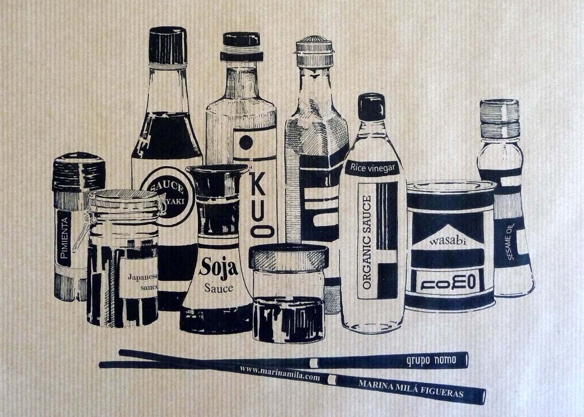 Ilustraciones a tinta negra y rotulador negro para los restaurantes japoneses “Nomo y Kuo” del Grupo Nomo Barcelona.