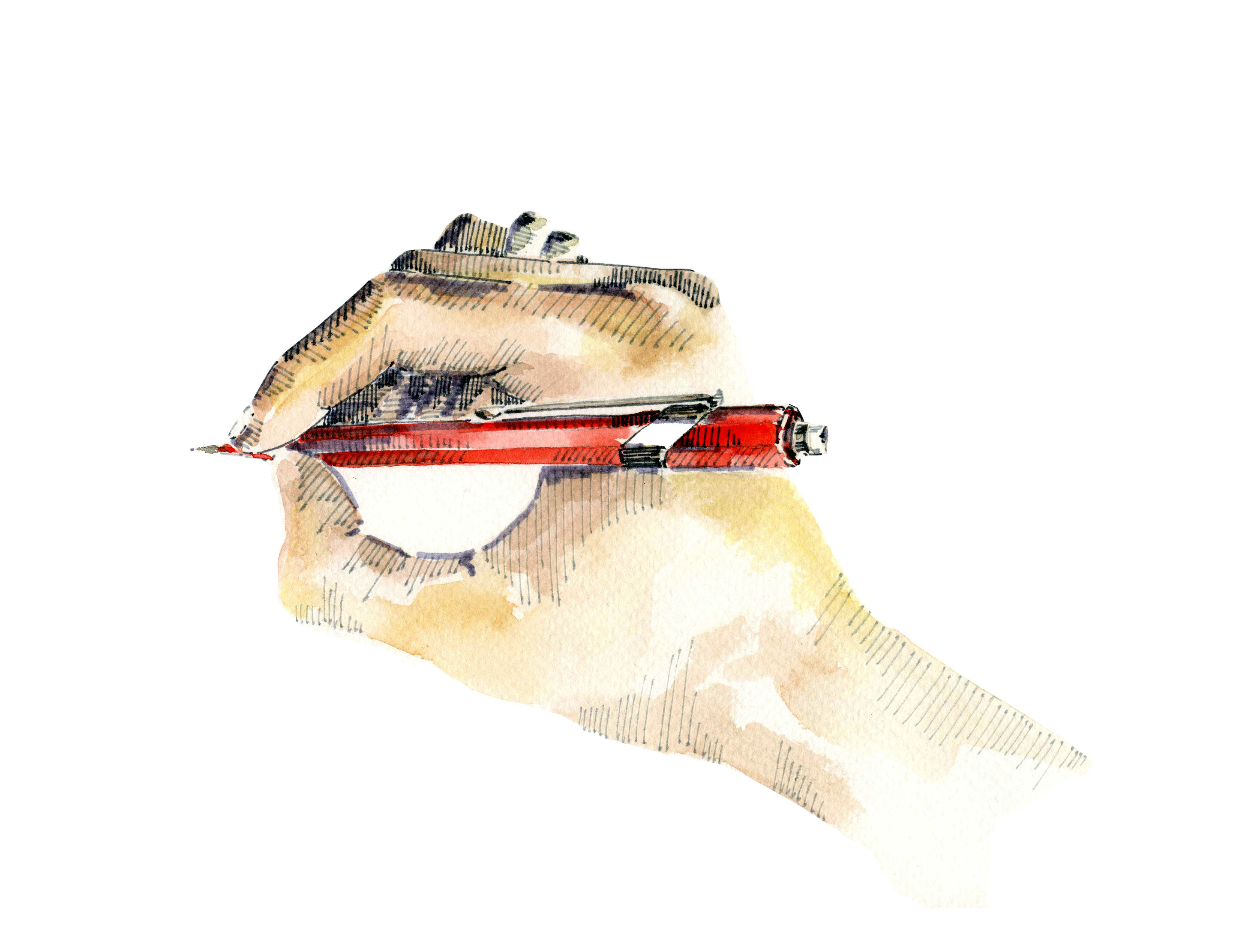 Acuarela y pilot gris sobre papel.